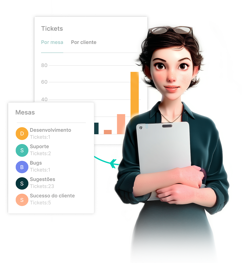 Fique de olho no volume de trabalho dos seus colaboradores com dashboards e relatórios claros e completos.